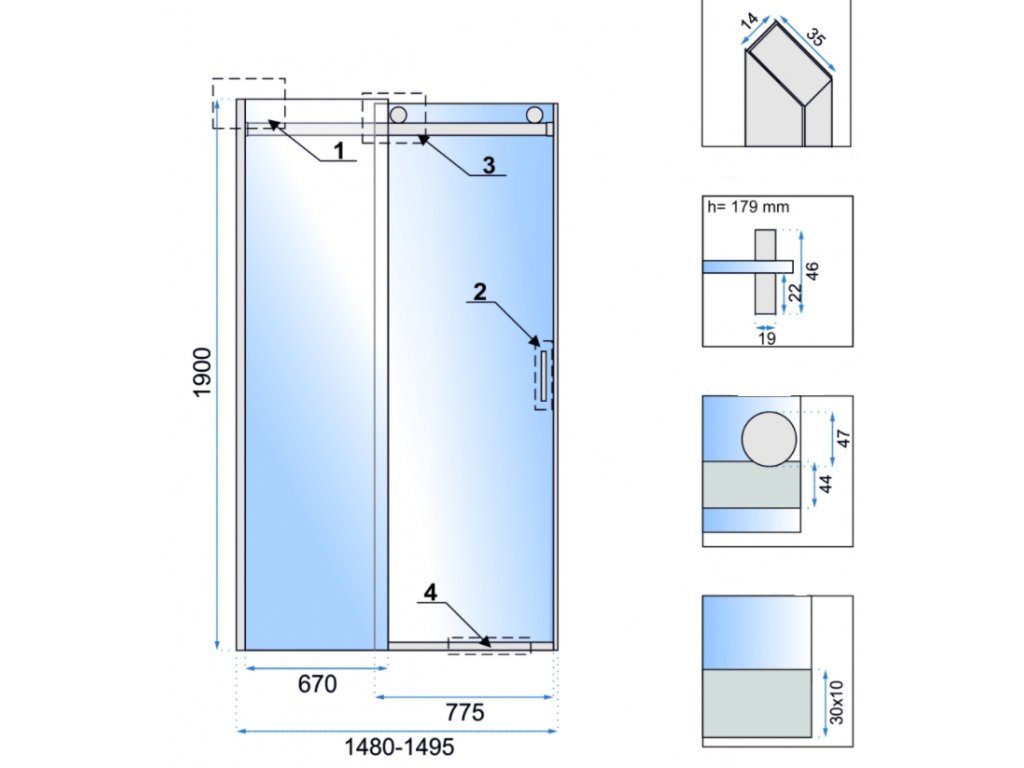 | Rozměr sprch.dveří: | 150cm |