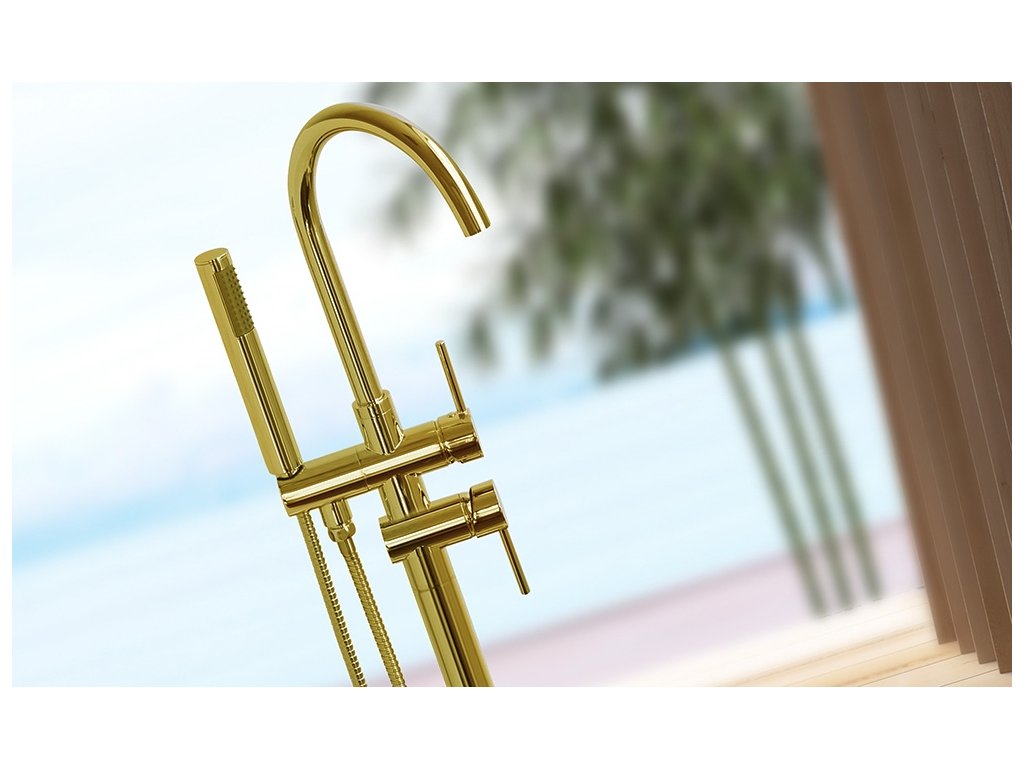 Volně stojící vodovodní baterie jsou moderní a elegantní možností umístění baterie do každé koupelny. Ideální pro koupelny větších rozměrů. V kombinaci s krásnou volně stojící vanou vytváří vynikající designový efekt. Keramická kartuše zaručuje dlouhou životnost. Tato volně stojící baterie dokonale zaplní prostor v koupelně. Produkt byl vyroben z mosazi pokryté zlatou barvou. Baterie je velmi odolná vůči poškození a snadno se čistí.