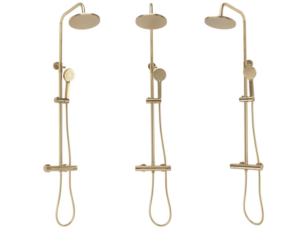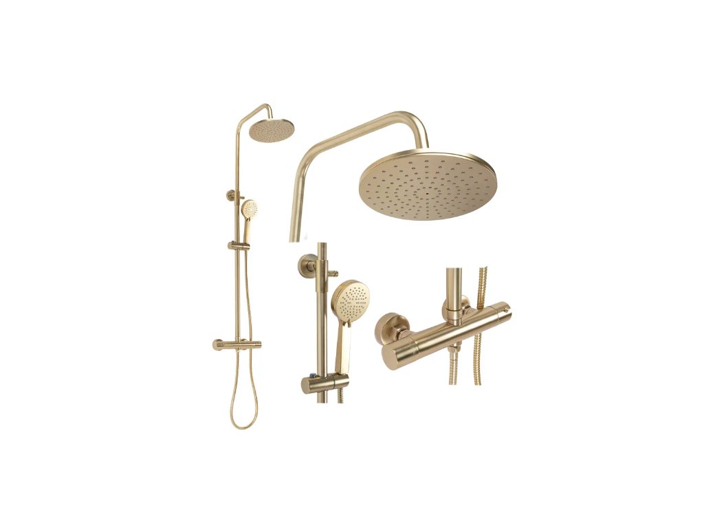 Designový termostatický sprchový set ze série Gold Edition v broušené zlaté povrchové úpravě. Při výrobě těchto setů je používána nejlepší technologie, aby každý zažil co největší pohodlí při každodenním sprchování. Vysoká kvalita materiálů zajišťuje trvanlivost a spolehlivost po mnoho let.