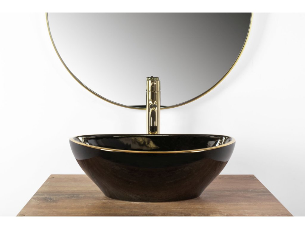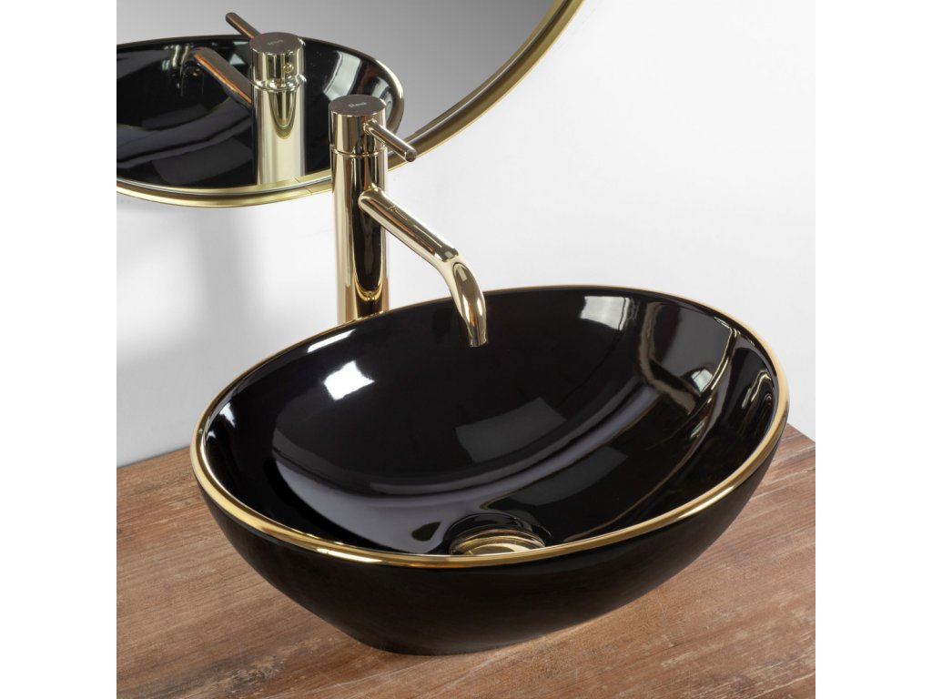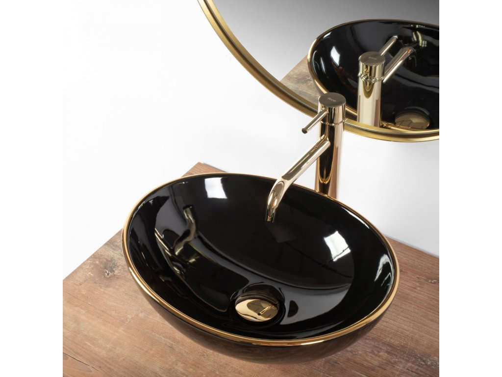 Rea Sofia black 63 umyvadlo na desku, gold edges, REA-U3695