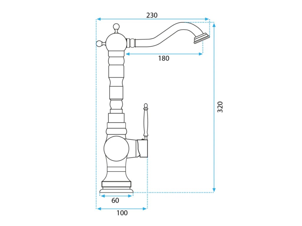 Představujeme vám mimořádně krásnou a jedinečnou baterii s otočným výtokem. Ve finále dosažený retro styl s mosaznými vizuálními prvky podtrhne jedinečnost každé koupelny nebo kuchyně. Baterie je vhodná k instalaci na desku nebo umyvadlo. Hlavice použitá v této baterii je díky použitému keramickému materiálu mimořádně odolná.