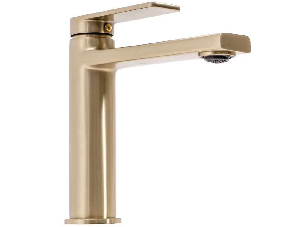 Umyvadlová baterie ze 100% mosazi nejvyšší kvality. Tento materiál zaručuje spolehlivost a bezproblémový provoz produktu po mnoho let. Krásný tvar baterie dokonale ladí s jakoukoliv koupelnou. Je vyrobena z mosazi pokrytou krásnou matnou zlatou barvou. Díky speciálnímu způsobu výroby je velice odolná a snadno se čistí.