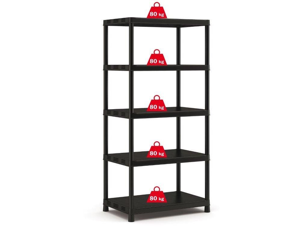 Regál obsahuje celkem 5 polic s extrémní nosností, které unesou i výrazně těžší předměty všeho druhu. Lze ho tedy využít pro skladování dílenského nářadí či zahradnických potřeb, kdy přijde vhod pro uložení náčiní, které by se jinam nevešlo. Na straně se nachází organizér na nářadí, abyste ho měli vždy po ruce a nemuseli ho hledat. Regál rovněž můžete přimontovat na zeď pro větší stabilitu. Díky svému provedení v univerzální černé barvě vhodně doplní každý prostor.