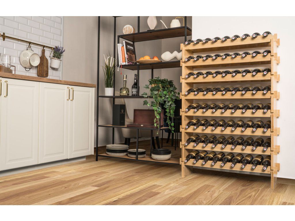 Pořiďte si designově čistý a zároveň praktický stojan na 72 lahví vína. Precizně zpracované bambusové dřevo mu dává příjemný přírodní vzhled, takže stylově doplní každý interiér. Hlavní ale je, že jsou v něm láhve bezpečně a správně uložené, nedochází k vysychání korku a snadno se v nich orientujete.