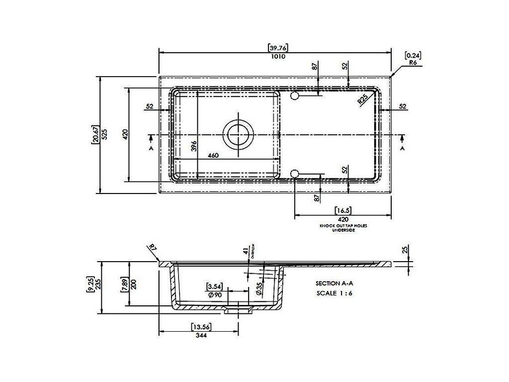 Poznámka: Keramický dřez je vypalován v pecích a glazura je nanášena ručně, každý kus se tím pádem stává originálem. Je nutno počítat s /- 1-1,5 cm toleranci rozměru. Doporučujeme, pro zrealizování kuchyňské linky, mít dřez fyzicky u sebe.