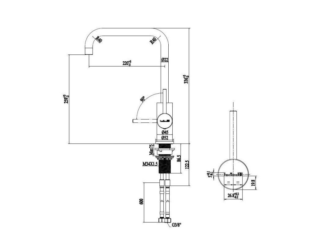 Vanička dřezu Miami 500 je dostatečně hluboká (20 cm) pro pohodlné mytí i objemného nádobí jako jsou hrnce nebo pečící plechy.