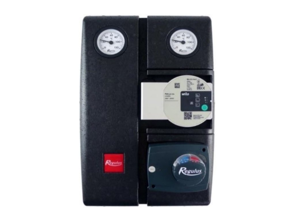 Dvoutrubková čerpadlová skupina s nízkoenergetickým oběhovým čerpadlem Wilo PARA 25/8 SC, filtrem s magnetem, směšovacím ventilem s pohonem, zpětným ventilem pod filtrem, kulovými kohouty, teploměry a šroubeními pro připojení k rozdělovači. Připojovací rozteč 125 mm. Umožňuje uzavření otopných okruhů, kontrolu teplot a snadný servis.