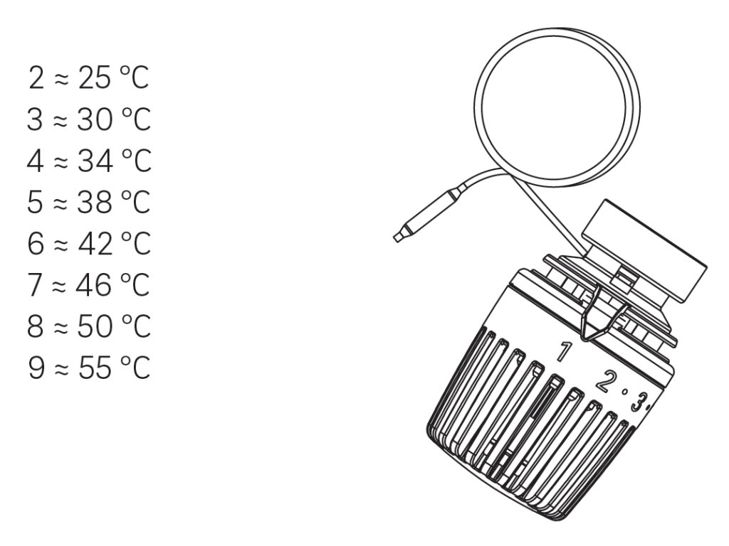 ![]() | Regulační sada FLEX s termostatickou hlavicíTermostatická hlavice nastavitelná od 20 ° C do 55 ° C s ponorným čidlem a kapilárou. S termostatickou hlavicí je podlahové vytápění provozováno na konstantní přívodní teplotu. Požadovaná přívodní teplota se nastaví na termostatické hlavici. Termostatická hlavice lze nahradit dle potřeby servopohonem (není součástí dodávky). | ||||||||||||