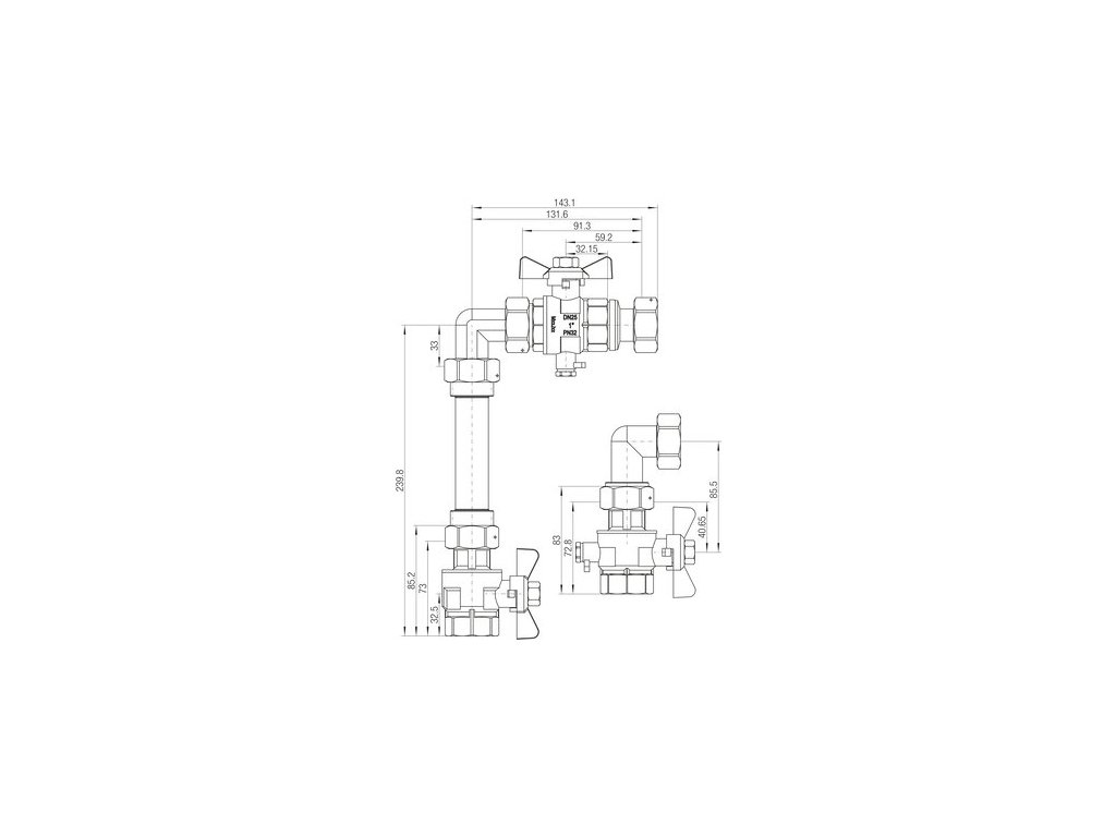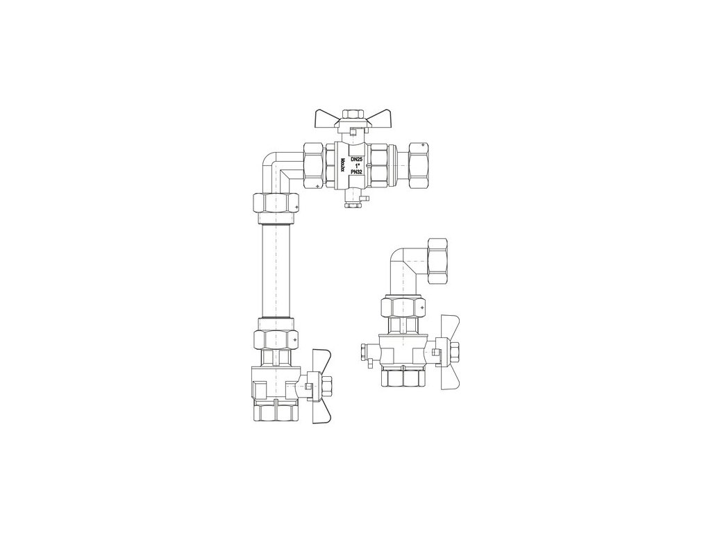 Připojovací set měřiče tepla – rohové provedeníUrčený pro měřiče tepla se stavební délkou 110 mm a 130 mm.