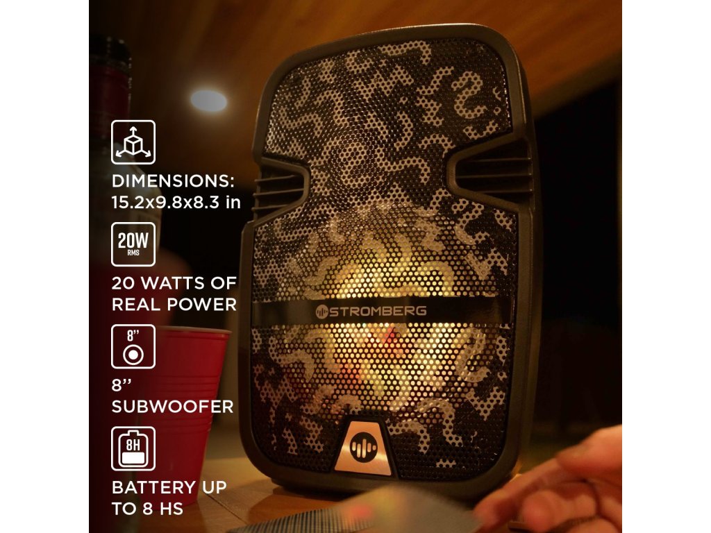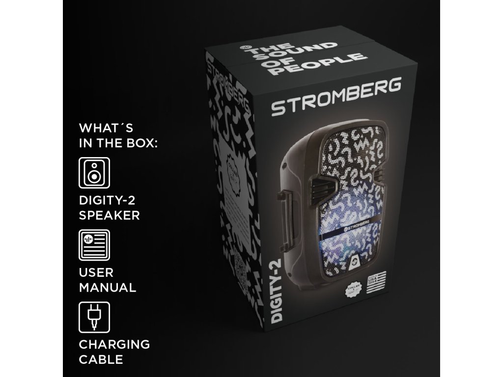 Reproduktor Stromberg DIGITY-2 – silný zvuk, chytré funkce a kompaktní tělo. Díky výkonu 20 W RMS a 8" reproduktoru přináší čistý a silný zvuk, ať už jste doma nebo venku. Vestavěná baterie 1500 mAh zajistí až 8 hodin přehrávání na jedno nabití bez přerušení.