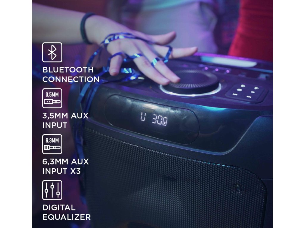Reproduktor TONE-2 je vybaven dvěma 8" subwoofery a jedním 3" tweeterem, které společně zajišťují vyvážený zvuk s výraznými basy. V balení najdete kabelový mikrofon, díky kterému si užijete karaoke, moderování nebo prezentaci. S připojením dalších dvou mikrofonů se hodí i pro skupinové akce.