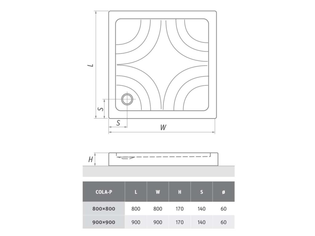 ROTH COLA-P sprchová vanička 900x900x170mm akrylátová, čtvercová, bílá, 8000023