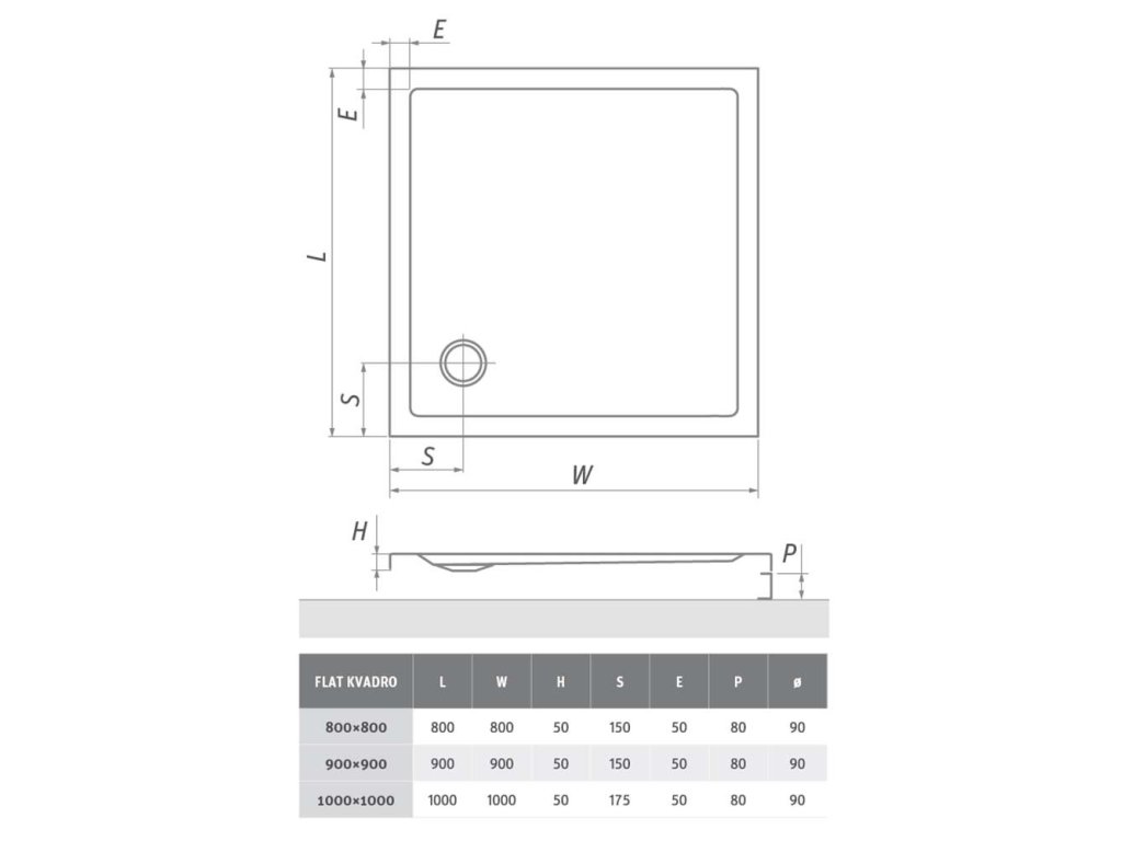 ROTH FLAT KVADRO sprchová vanička 1000x1000x50mm čtvercová, akrylátová, bílá, 8000120