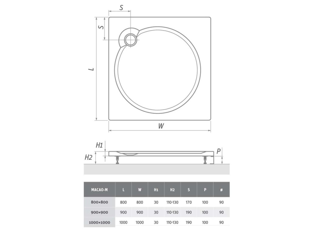 POZOR! Dodávka vaničky nezahrnuje dodávku sifonu. Pokud máte o sifon zájem, musíte si ho objednat zvlášť. K této vaničce objednávejte sifon o průměru 90 mm