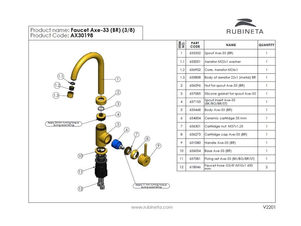 - V této baterii je použit perlátor Rubineta Spider – speciální mikrotechnologie snižují hladinu hluku, tvoří dokonalý proud vody, šetří vodu.