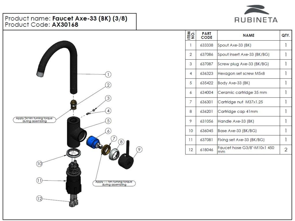 Rubineta Dřezová baterie AXE-33 Černý granit OLBAAXE33BK