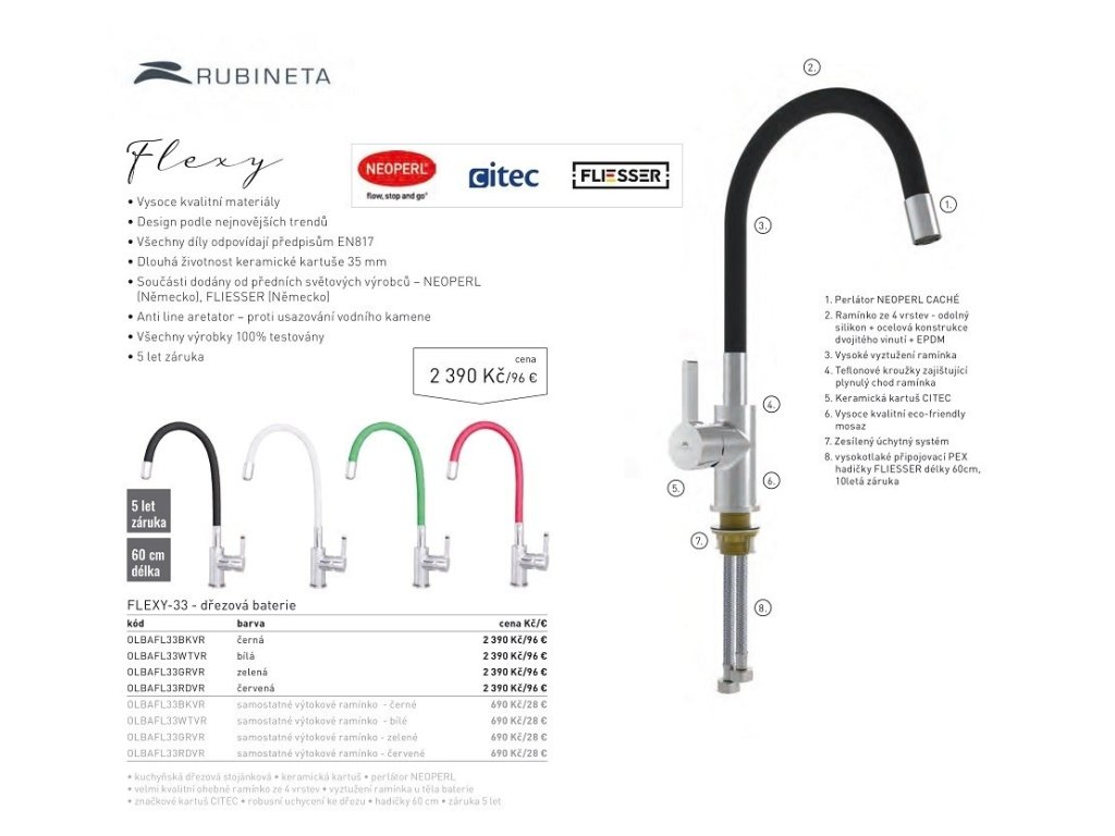 Přednosti dřezové stojánkové vodovodní baterie FLEXY-33: