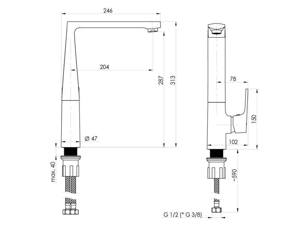 Sada obsahuje flexibilní 60 cm hadice Fliesser z polyesteru s vnitřní duší z PeX. Vyrobeno podle nejnovější evropské normy EN 13618: 2016.