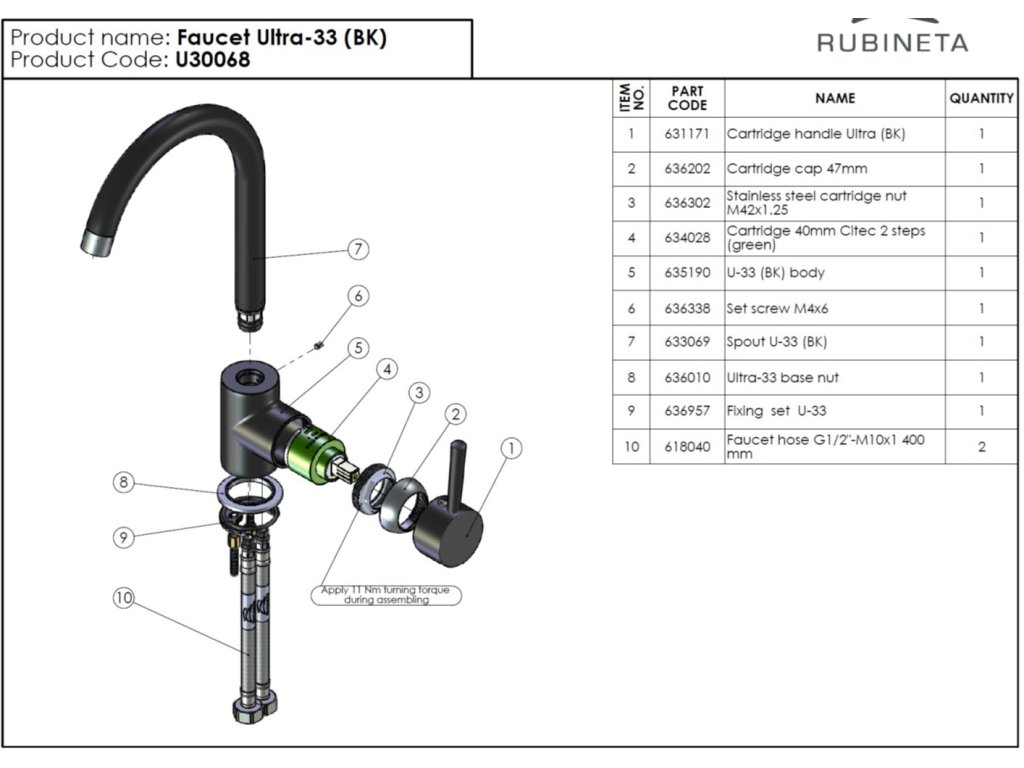 Rubineta Dřezová baterie ULTRA-33 Černá OLBAU33BK