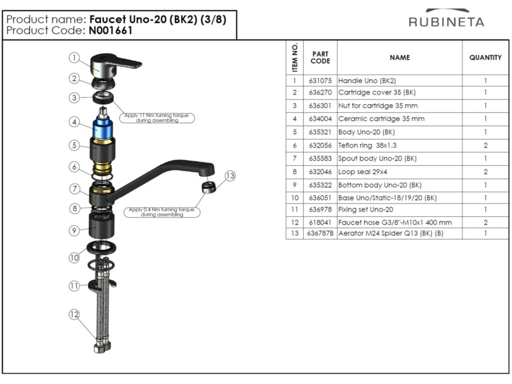 Rubineta Dřezová baterie UNO-20 NEW Černá OLBAUN20BNEW