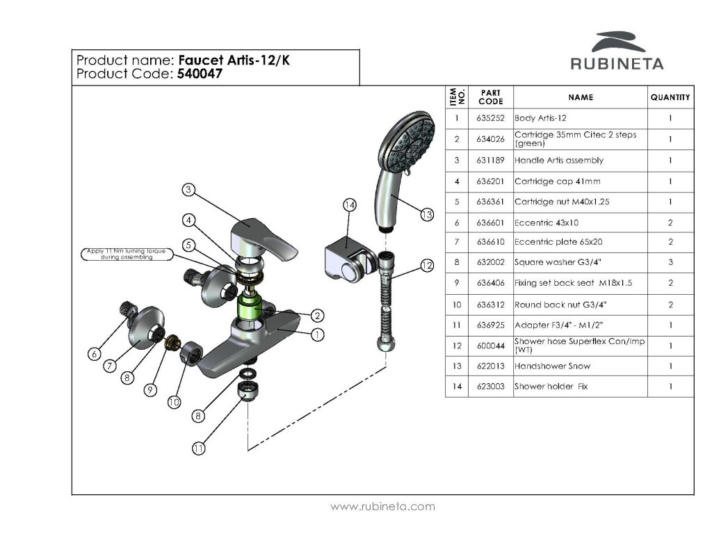 Sprchová baterie nástěnná ARTIS A-12K má moderní ergonomický dizajn, je vyrobena z materiálů prvotřídní kvality což zaručuje dlouhou a spolehlivou životnost. Perlátor NEOPERL zajišťuje tichý, bezchybný průtok a vysokou životnost baterie.