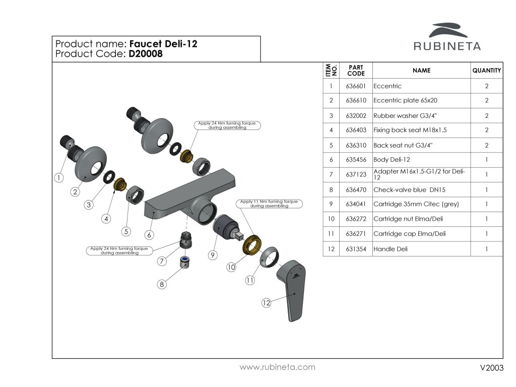 Přednosti nástěnné vodovodní baterie DELI-12: