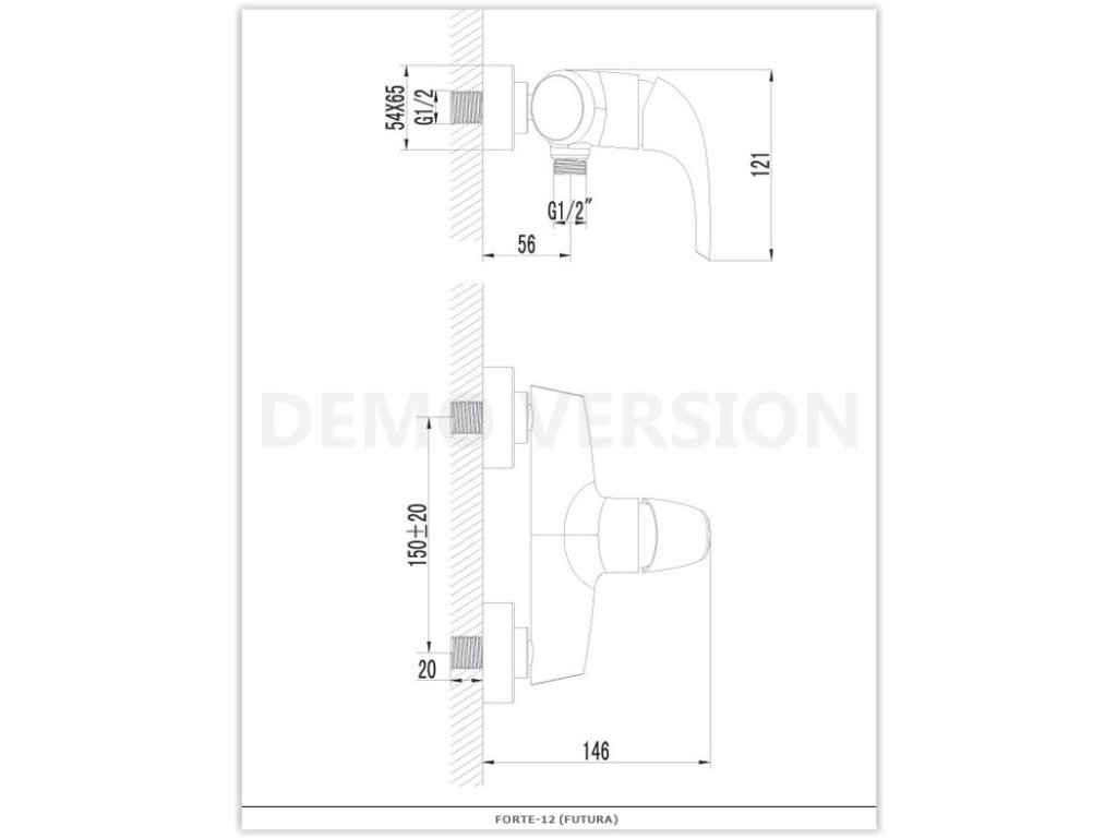 Sprchová nástěnná baterie FORTE-12 vyniká vysoce kvalitním zpracováním a spolehlivou funkčností všech součástí a materiálů.
