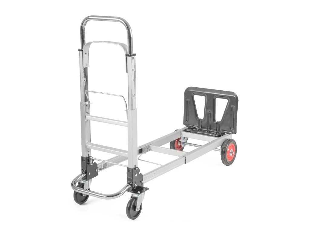 Rukojeť i konstrukce jsou teleskopické, takže si celý vozík snadno přizpůsobíte svým potřebám. Na výběr máte ze 2 poloh. Ve složeném stavu zabírá minimum místa, což oceníte v garáži, dílně nebo při přepravě v autě.