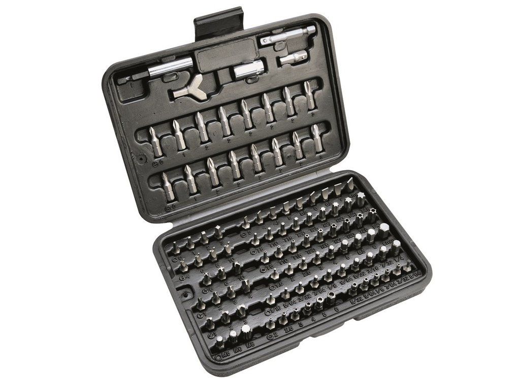 Sada bitů renomované české značky Narex obsahuje 100 kusů nářadí. V praktickém kufříku z odolného plastu tak najdete bity ze speciálního Chrom vanadiového povrchu. Pevný plastový pořadač s dlouhou životností je vlisovaný do robustní odolné kazety s pojistným zámkem, který zabraňuje samovolnému otevření.