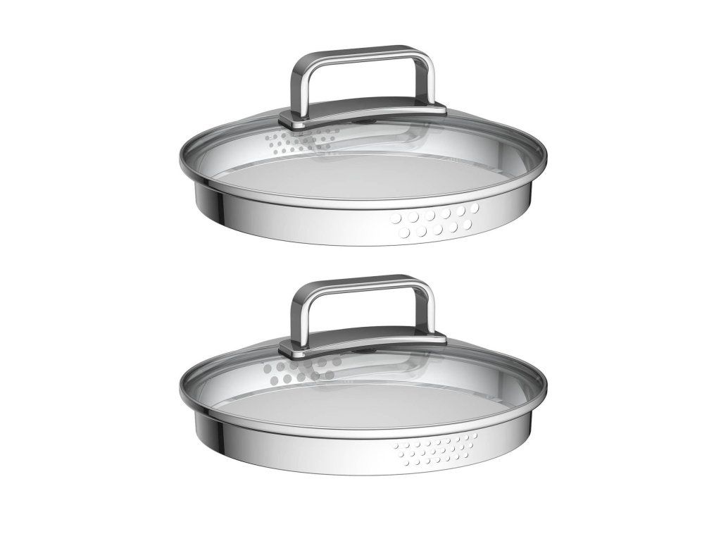 Obrovskou výhodou oproti běžně používaným hrncům jsou výparníky/cedníky, kterými jsme osadili všechny poklice v sadě. Už si nepopálíte ruce při slévání horké vody z brambor či těstovin. Pro rychlejší uvedení surovin k varu jen pootočíte poklicí a výparník/cedník se uzavře.