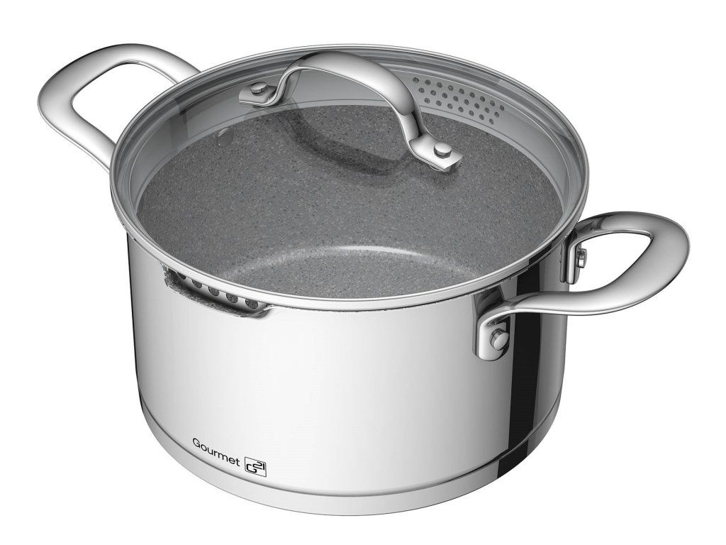 Celonerezová sada s nepřilnavým povrchem GREBLON® C3+ zaujme na první pohled unikátní vnitřní vrstvou nerezového nádobí G21 Gourmet Miracle. Speciální potravinářská ocel 18/10 CrNi s vrstvou GREBLON® C3+ je dokonalým materiálem díky svým jedinečným vlastnostem.