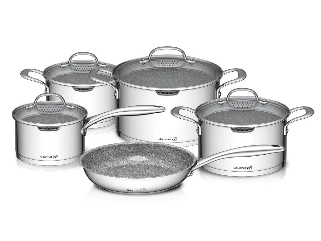 Sada nádobí G21 Gourmet Miracle s cedníkem, 9 dílů, nerez/greblon, 60022154