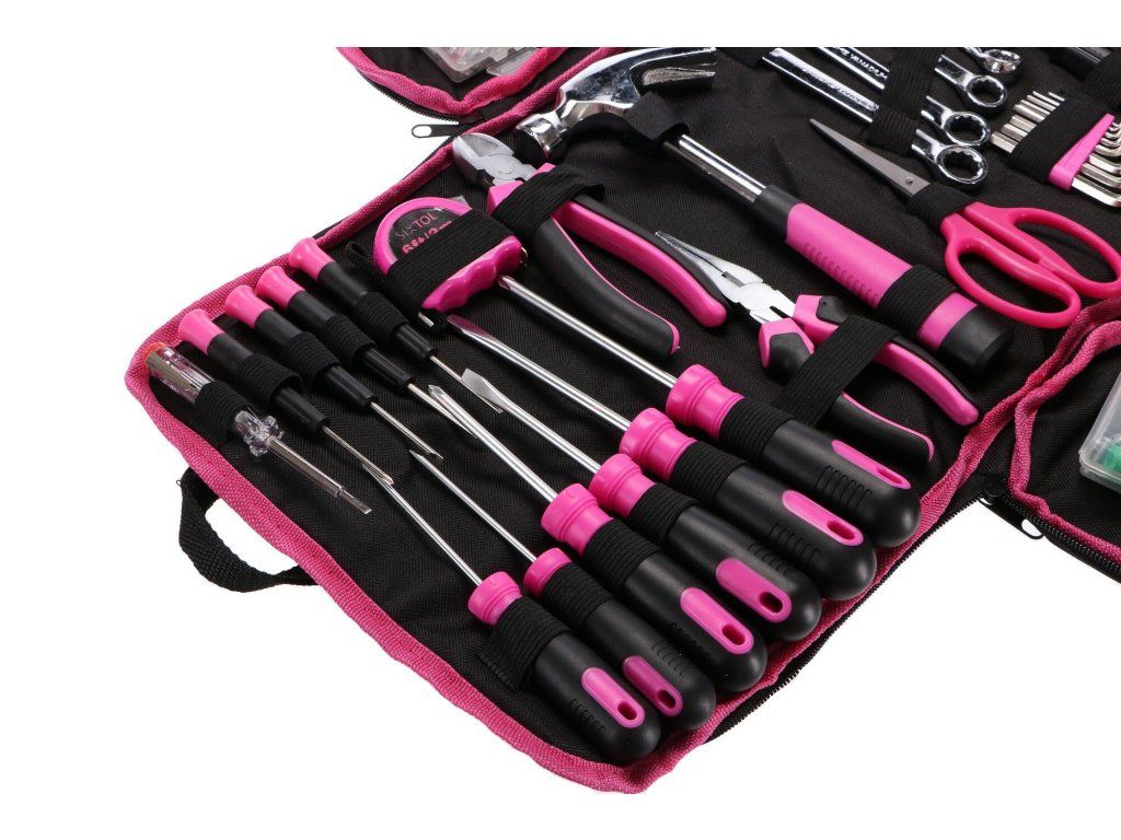 Sada nářadí Sixtol HOME PINK 120 BAG se zalíbí každé praktické ženě či kutilovi, který má v oblibě růžovou barvu. Opravíte s ní v domácnosti v podstatě vše, na co si vzpomenete. Ve stylové brašně najdete celkem 120 kusů náčiní. Využijete je doma i v dílně.