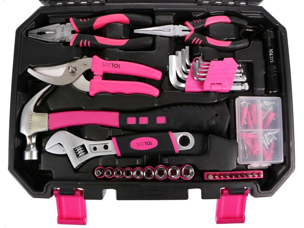 Sada nářadí Sixtol HOME PINK 128 se zalíbí každé praktické ženě či kutilovi, který má v oblibě růžovou barvu. Opravíte s ní v domácnosti v podstatě vše, na co si vzpomenete. Ve stylovém kufříku najdete celkem 128 kusů náčiní. Využijete je doma, na zahradě i v dílně.