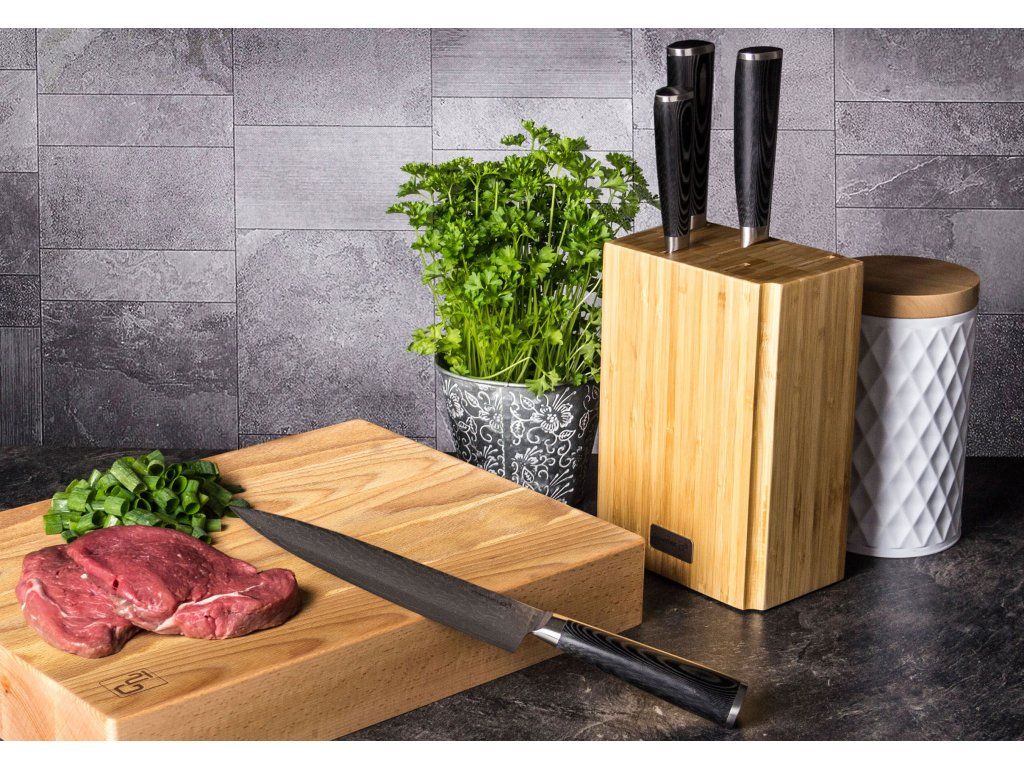 - bambusový blok pro správné a šetrné ukládání