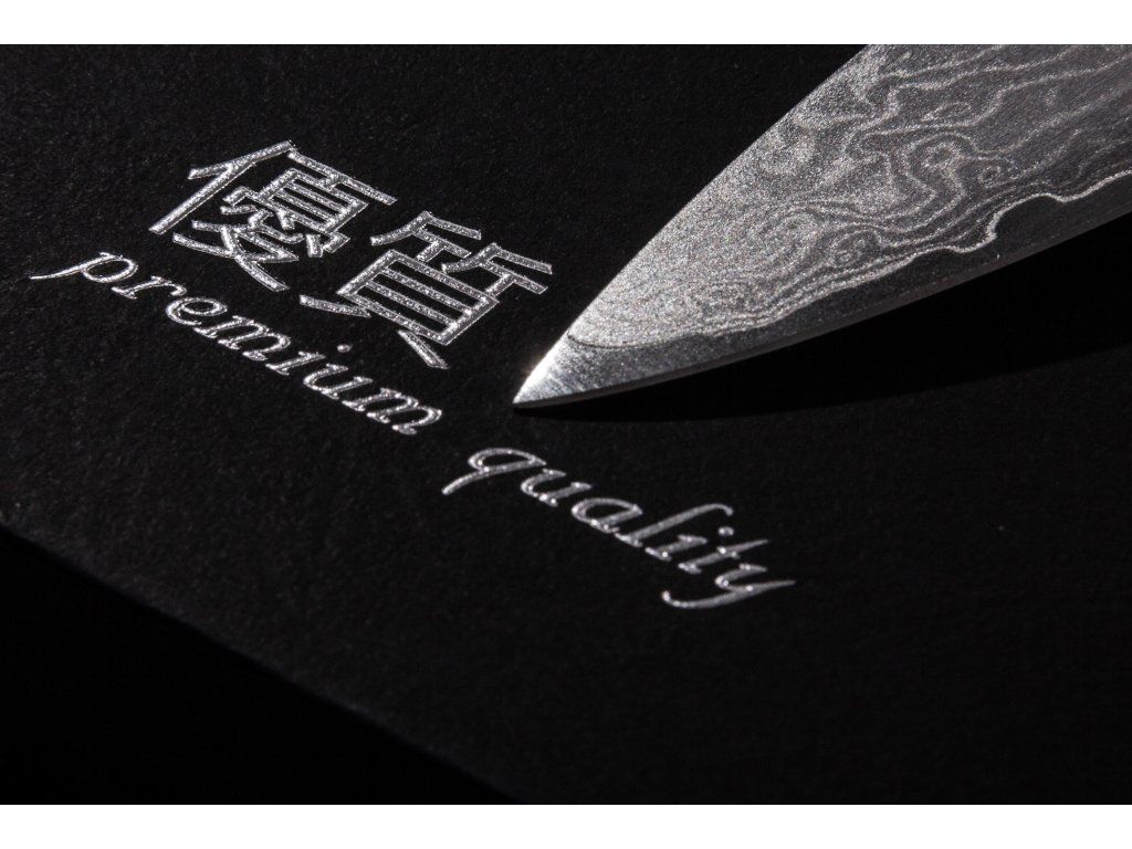 Čepel nože je z kvalitní 67vrstvé damaškové oceli VG-10 s tvrdostí 60 HRC (u běžných nožů se tvrdost pohybuje kolem 55 HRC, opravdu ostré nože mají tvrdost 58–60 HRC).