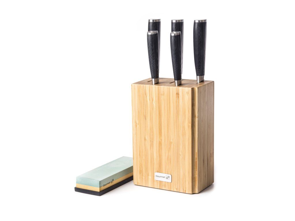 Sada nožů G21 Damascus Premium v bambusovém bloku, Box, 5 ks + brusný kámen, 6002299