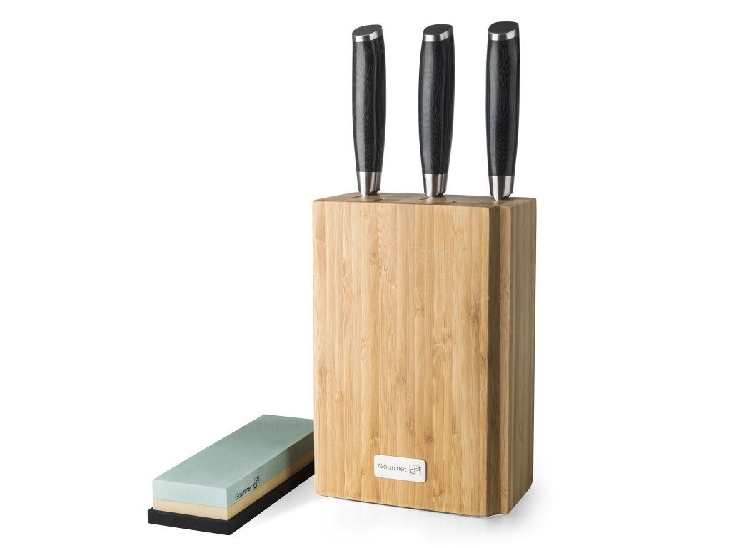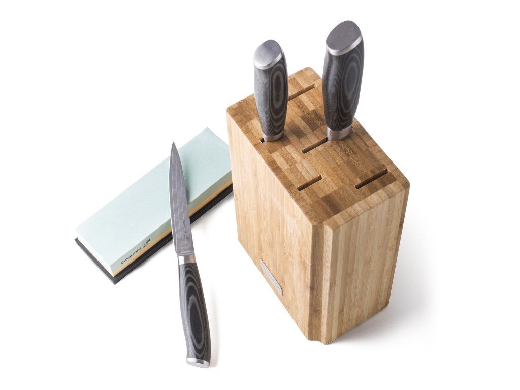 Sada nožů G21 Gourmet Damascus v bambusovém bloku 3 ks + brusný kámen, 6002217
