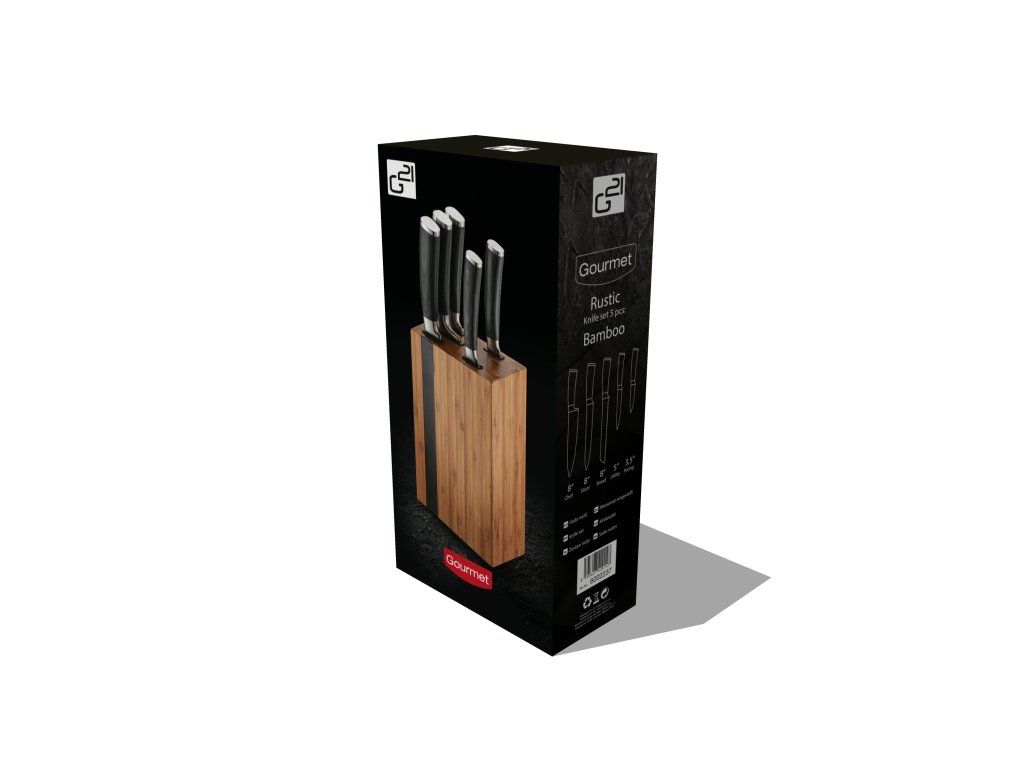 Sada nožů G21 Gourmet Rustic 5 ks + bambusový blok, 6002237