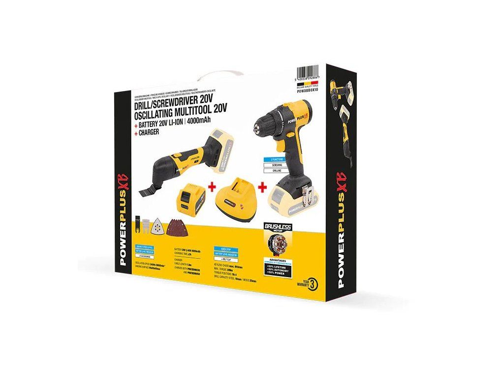 Sada Powerplus POWXBBOX10 - Aku vrtačka + multifunkční bruska 20 V, 4 Ah, 63606027