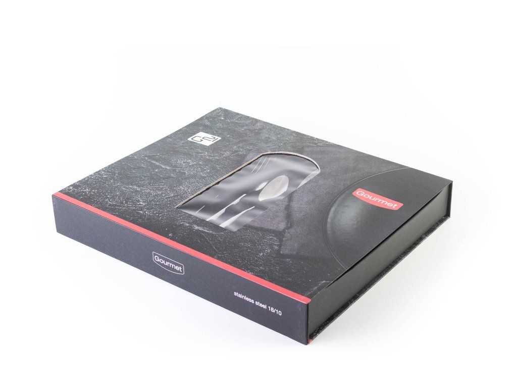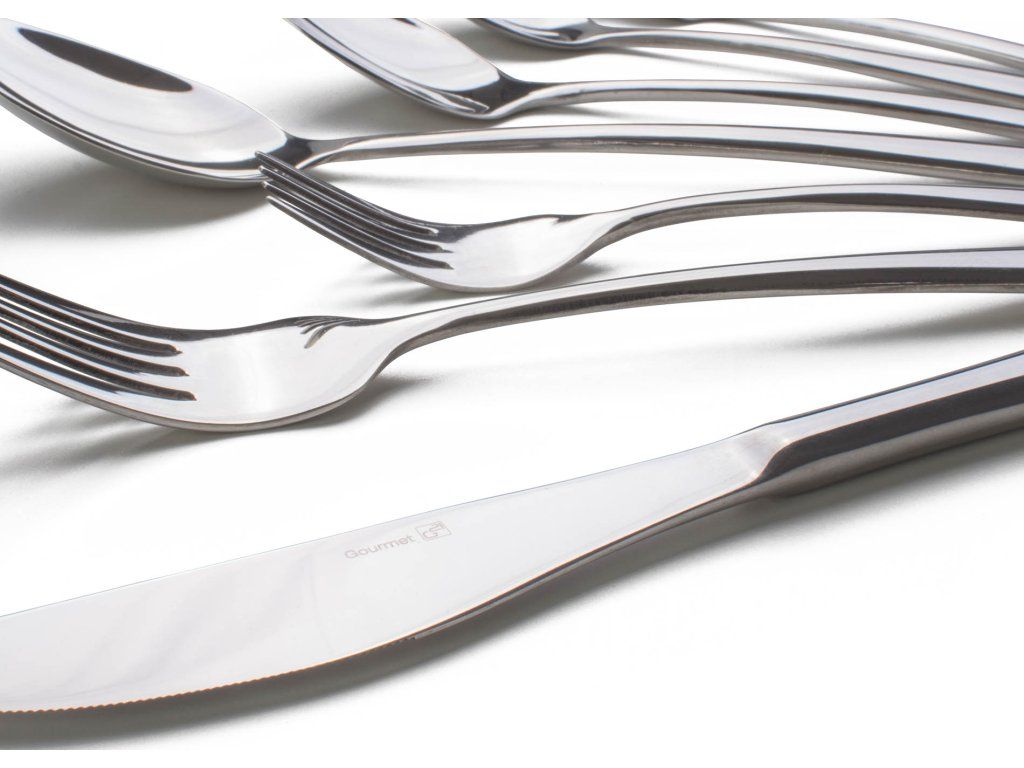 | Obsah balení: | 6x jídelní vidlička, 6x jídelní nůž, 6x polévková lžíce, 6x čajová lžička, 6x lžička na presso, 6x dezertní vidlička, 6x lžička |