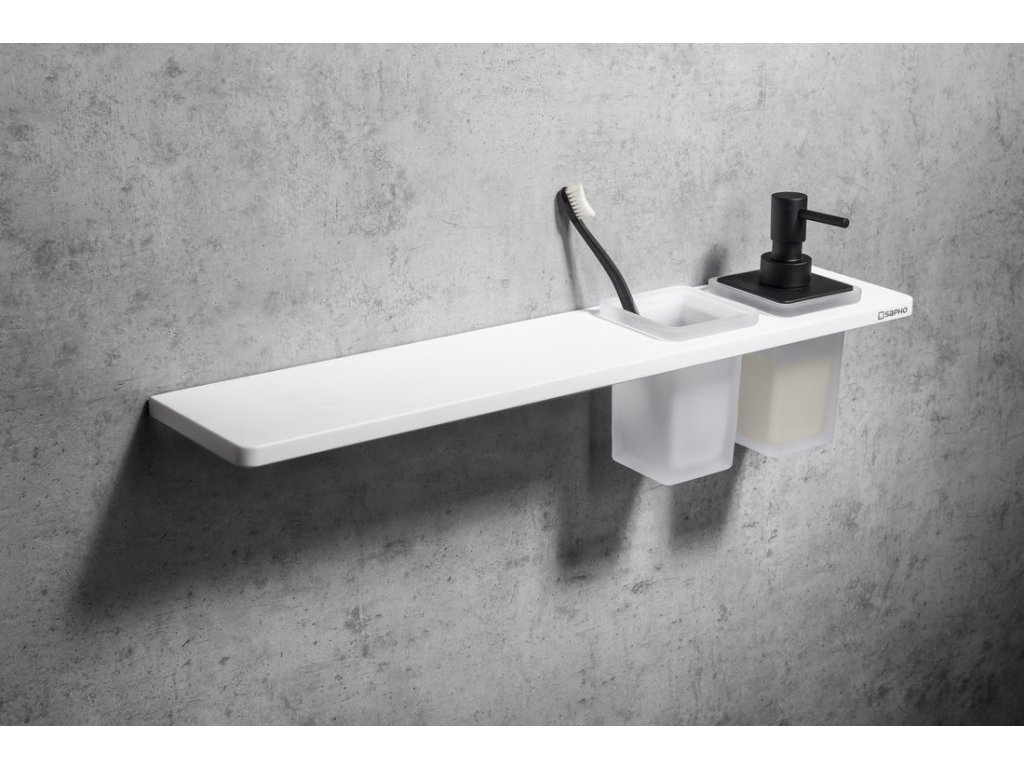 Sapho ABELINE police, sklenka + dávkovač/černá, 600mm, rockstone, bílá mat AE602-0101-03