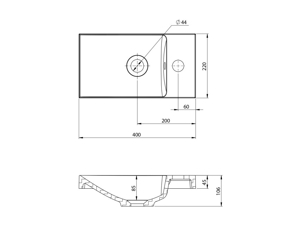 Sapho AGOS betonové umývátko 40x22cm, levé/pravé, tmavě hnědá pololesk AS40015