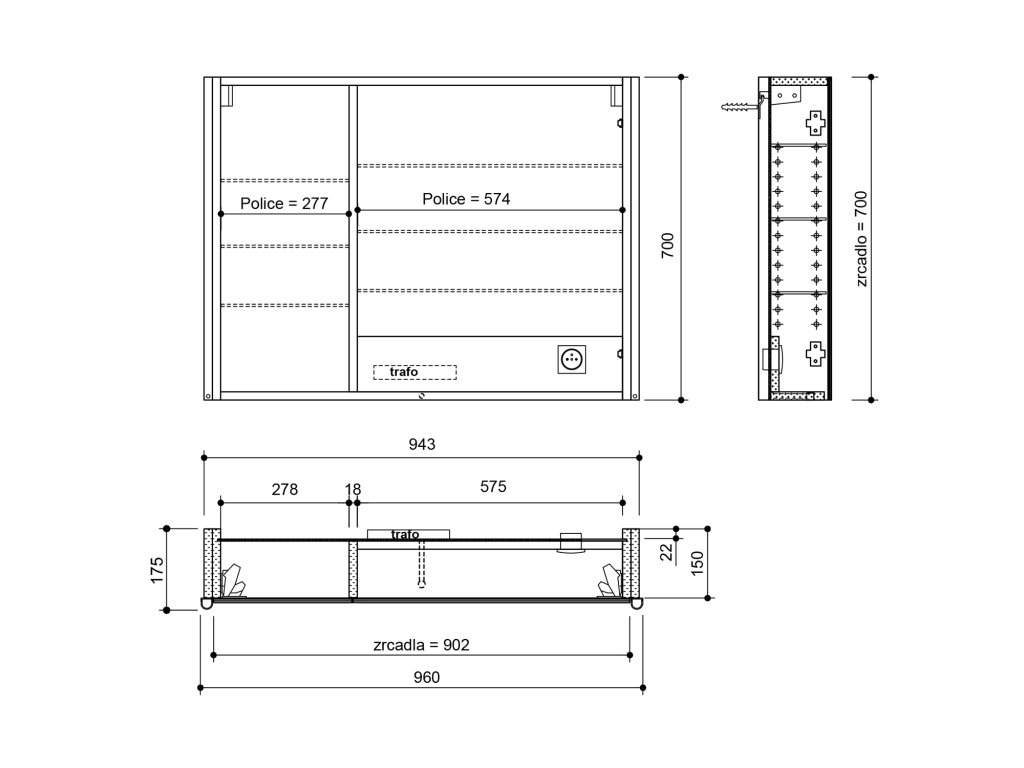 | Výbava: | Osvětlení;Elektrická zásuvka;Oboustranná zrcadlová dvířka;Zpomalovací panty |