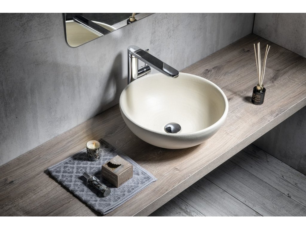 Sapho ATTILA keramické umyvadlo, průměr 43cm, slonová kost DK005