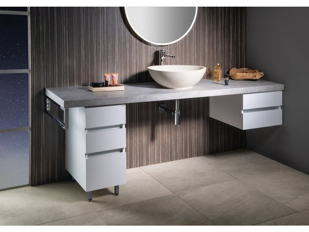 Série doplňkových skříněk k umyvadlovým deskám řady AVICE nabízí různé varianty skříněk od závěsných pod desku až po skříňky pojezdové. Vybírejte, kombinujte a dolaďte vzezření své umyvadlové sestavy k dokonalosti.