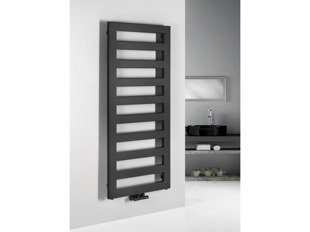 Designový radiátor ve dvou barevných variantách a dvou rozměrech. Ačkoliv má topení středové připojení, lze u něj zároveň použít topné tyče.