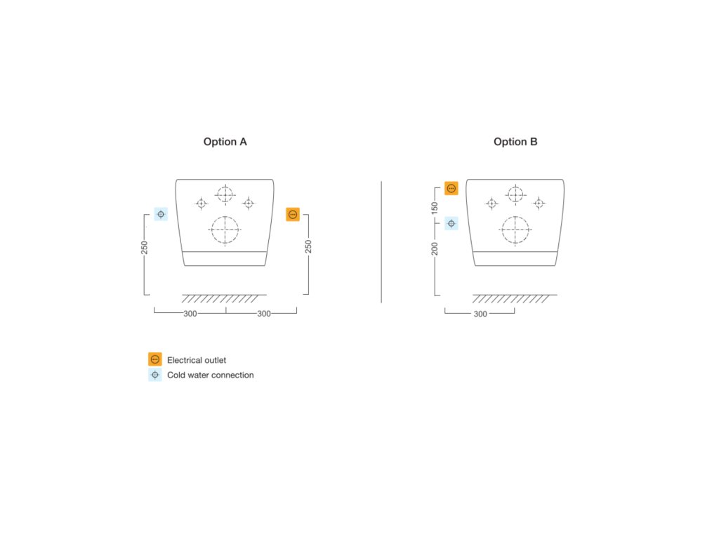 Bidet lze instalovat na Vaši stávající toaletní mísu. Abyste před pořízením bidetu měli úplnou jistotu, že bude vhodný na Vaši toaletní mísu, doporučujeme ověřit, zda rozměry této mísy odpovídají technickému výkresu - viz sekce "Ke stažení". V dosahu 1,4 m od bidetu je nutno umístit zásuvku 230V/50Hz. Způsob instalace je popsán v návodu k použití. Vlastní instalace je velice jednoduchá, balení obsahuje vše, co je potřeba. Přiloženou T-rozbočkou a pancéřovou hadicí se bidet připojí na přívod vody G3/8 a zapojí se do zásuvky. Do montážních otvorů v keramice, sloužících k instalaci toaletního prkénka, se pomocí přiložených šroubů instalují posuvné kolejničky, do nichž se bidet nasune.