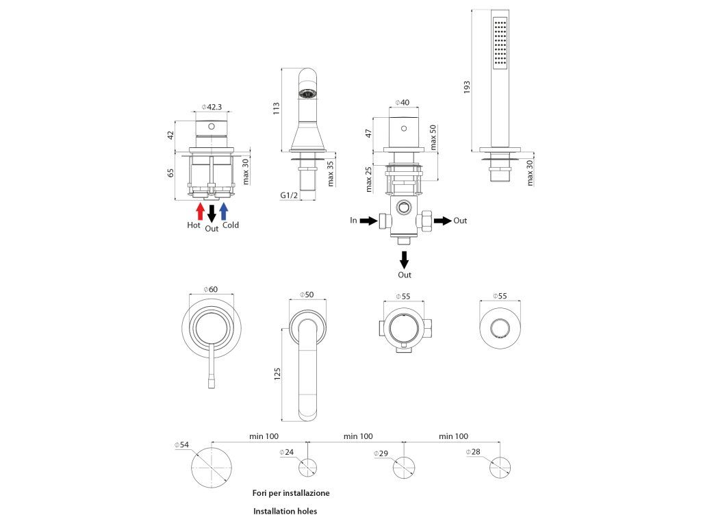 Sapho BLUE čtyřprvková baterie na okraj vany, chrom BUTECH4