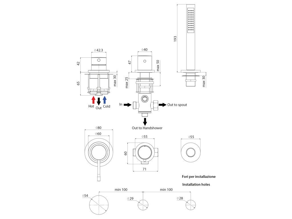 Sapho BLUE tříprvková baterie na okraj vany, chrom BUTECH3